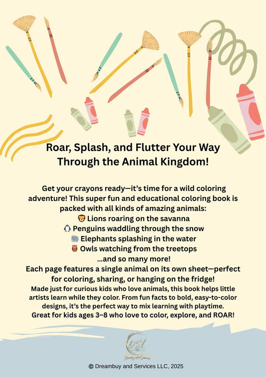 Animals Coloring Pages Activity Worksheet | Black and White | Illustrative Style